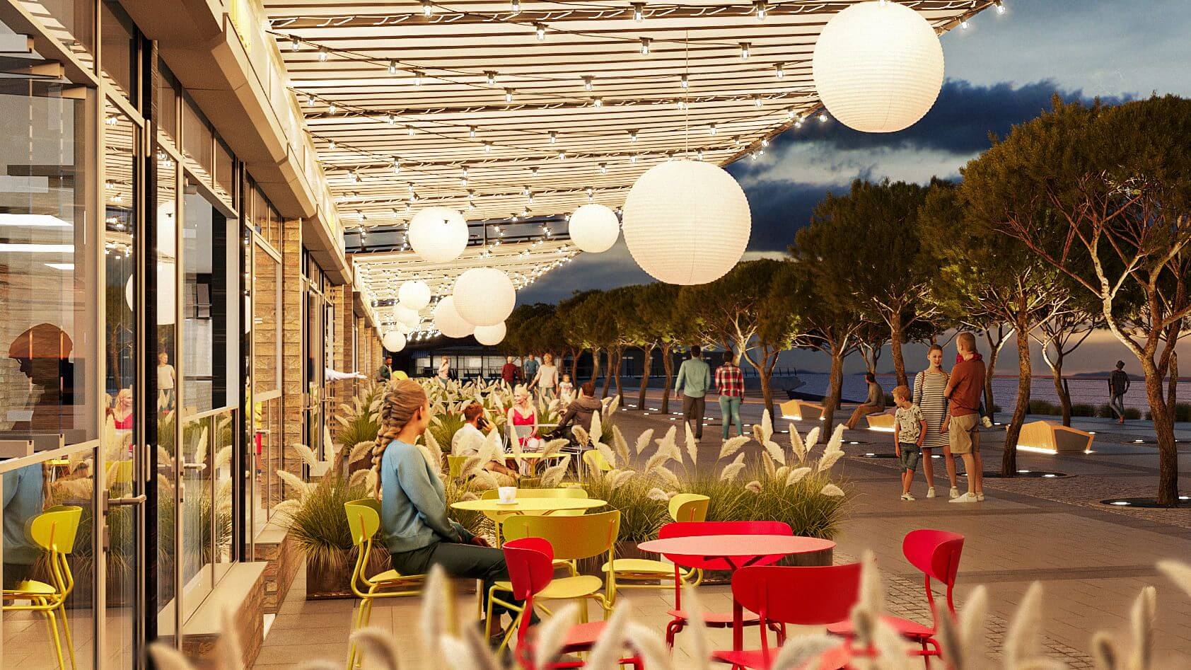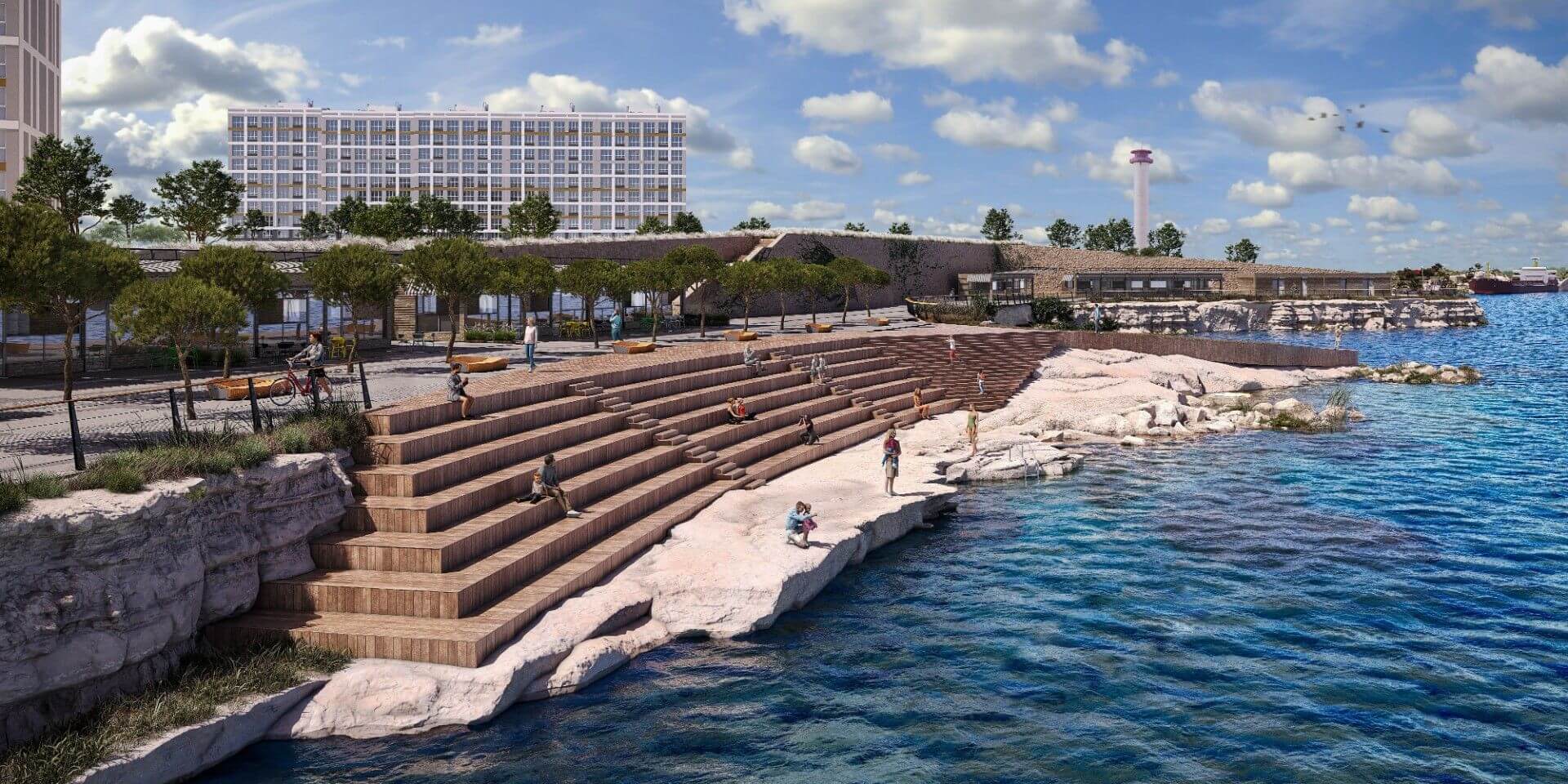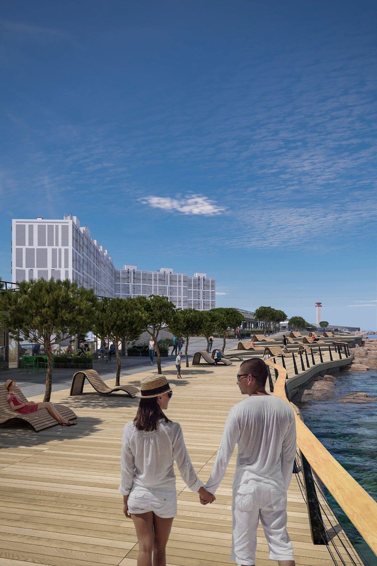 Береговая линия будет полностью благоустроена и станет одним из лучших мест для прогулок в Севастополе. На набережной предусмотрены зоны отдыха с шезлонгами и беседками, смотровые площадки с видами на море, пляжные зоны, а также спортивные и детские площадки. Особое место занимает гастро-променад «Кухни мира», где жители смогут насладиться блюдами различных национальных кухонь в стильных кафе с видом на море.