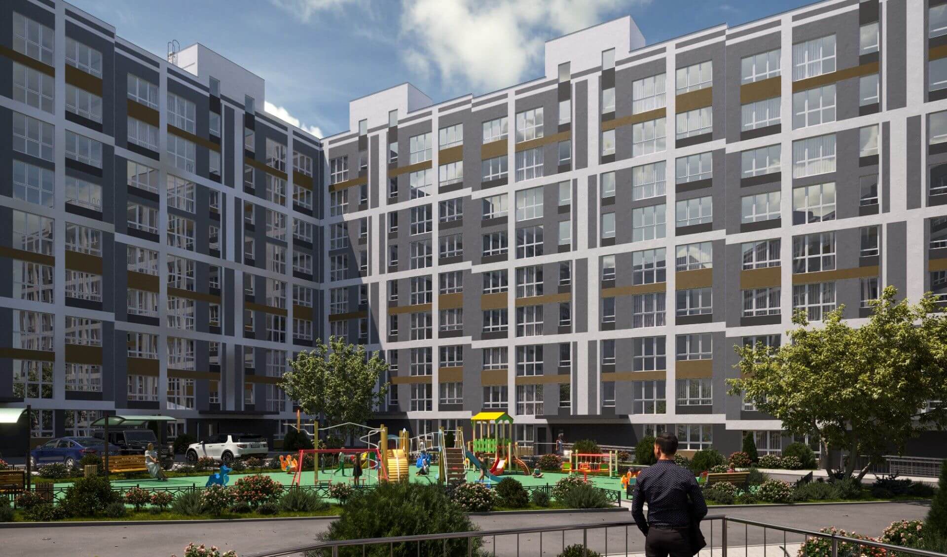 Особое внимание уделено озеленению территории – деревья, газоны, цветники и благоустроенные скверы создают атмосферу средиземноморского курорта. Также предусмотрена зона для выгула собак, чтобы проживание в комплексе было комфортным не только для людей, но и для их питомцев.