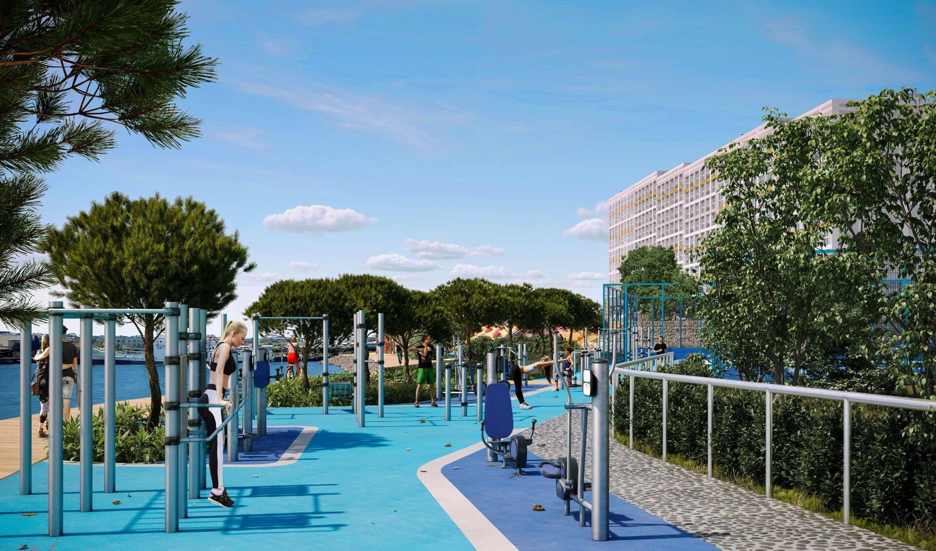 Одним из главных преимуществ ЖК «Порто Франко» является собственная благоустроенная набережная. Это уникальное пространство, созданное для отдыха и развлечений.